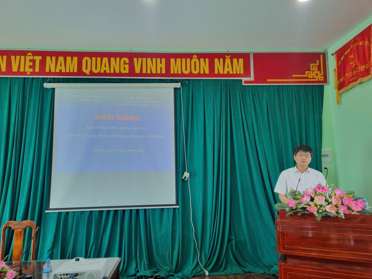 Khóa bồi dưỡng nhằm giúp học viên nâng cao năng lực thực tiễn trong công tác quản lý xây dựng tại cơ sở, đồng thời tạo diễn đàn để các địa phương trao đổi kinh nghiệm, tháo gỡ khó khăn trong triển khai các thủ tục hành chính, đảm bảo trật tự, mỹ quan đô thị và sự phát triển bền vững của tỉnh Vĩnh Long.