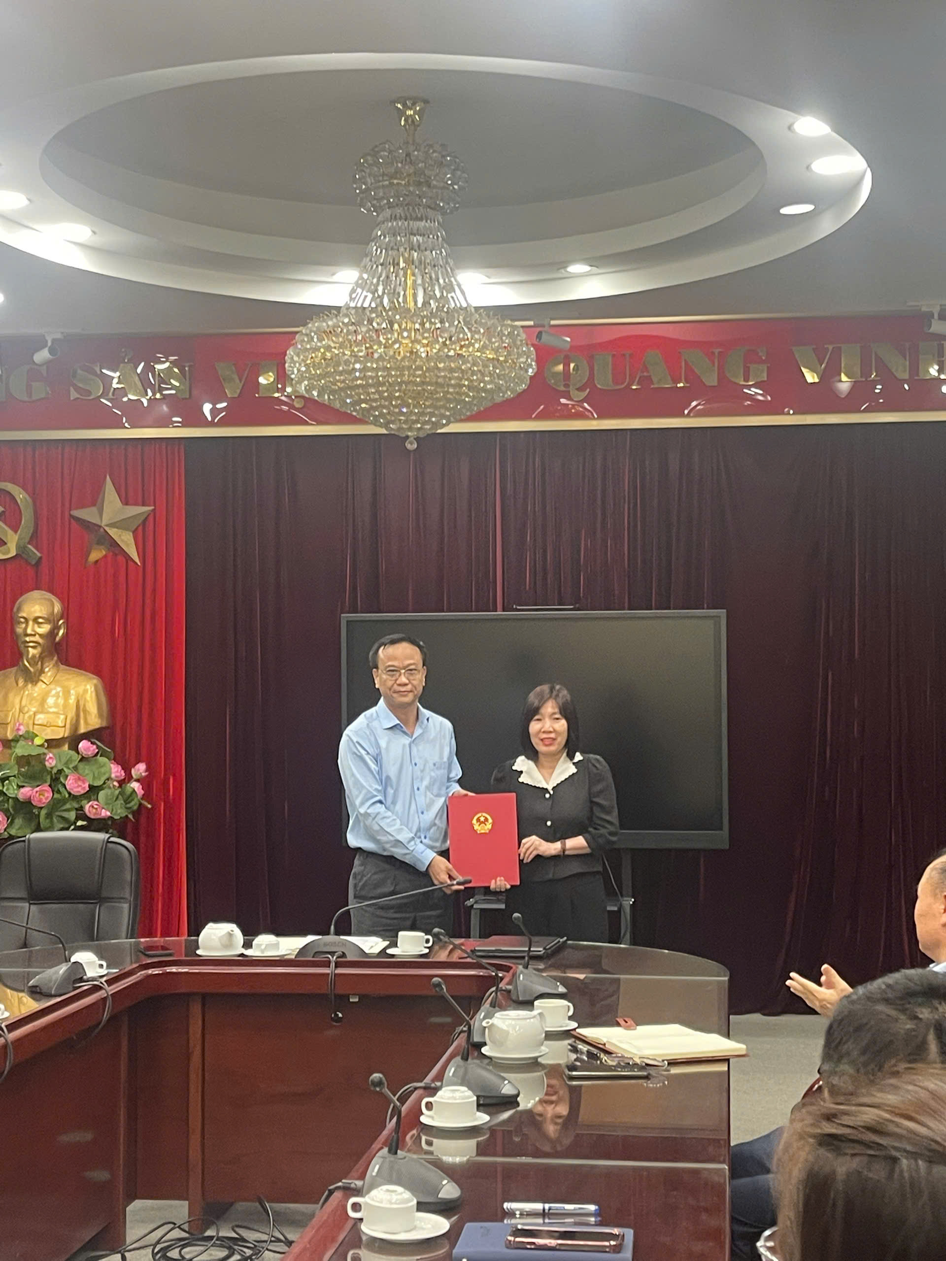 Thừa ủy quyền của Bộ trưởng Bộ Xây dựng, TS. Ngô Anh Tuấn – Bí thư Đảng ủy, Giám đốc Học viện công bố và trao Quyết định số 1886/QĐ-BXD của Bộ trưởng Bộ Xây dựng về việc bổ nhiệm chức danh Kế toán trưởng cho bà Đinh Thị Hải Yến - Thạc sĩ Kế toán kiểm toán và phân tích, kế toán Phòng Kế hoạch – Tài chính giữ chức vụ Kế toán trưởng, Học viện Chiến lược, bồi dưỡng cán bộ xây dựng kể từ ngày 01/11/2025.