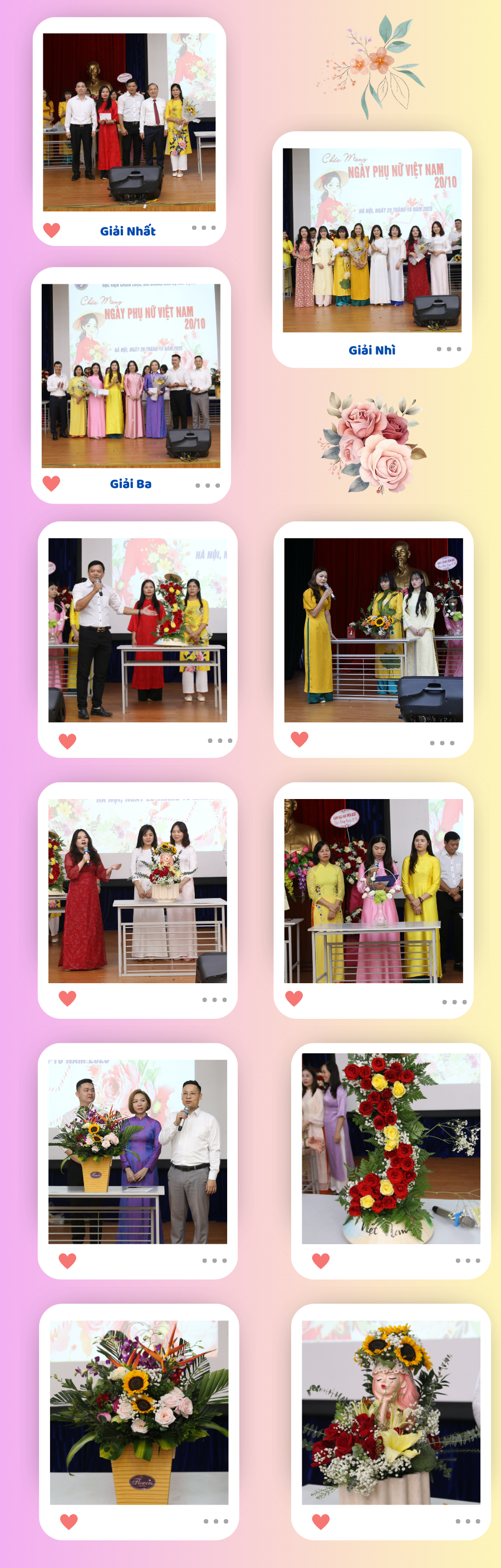Cũng tại buổi lễ kỷ niệm này, Công đoàn Học viện phối hợp với Ban Nữ công và Đoàn Thanh niên tổ chức Hội thi cắm hoa nghệ thuật với chủ đề “Tôn vinh vẻ đẹp Phụ nữ Việt Nam”.