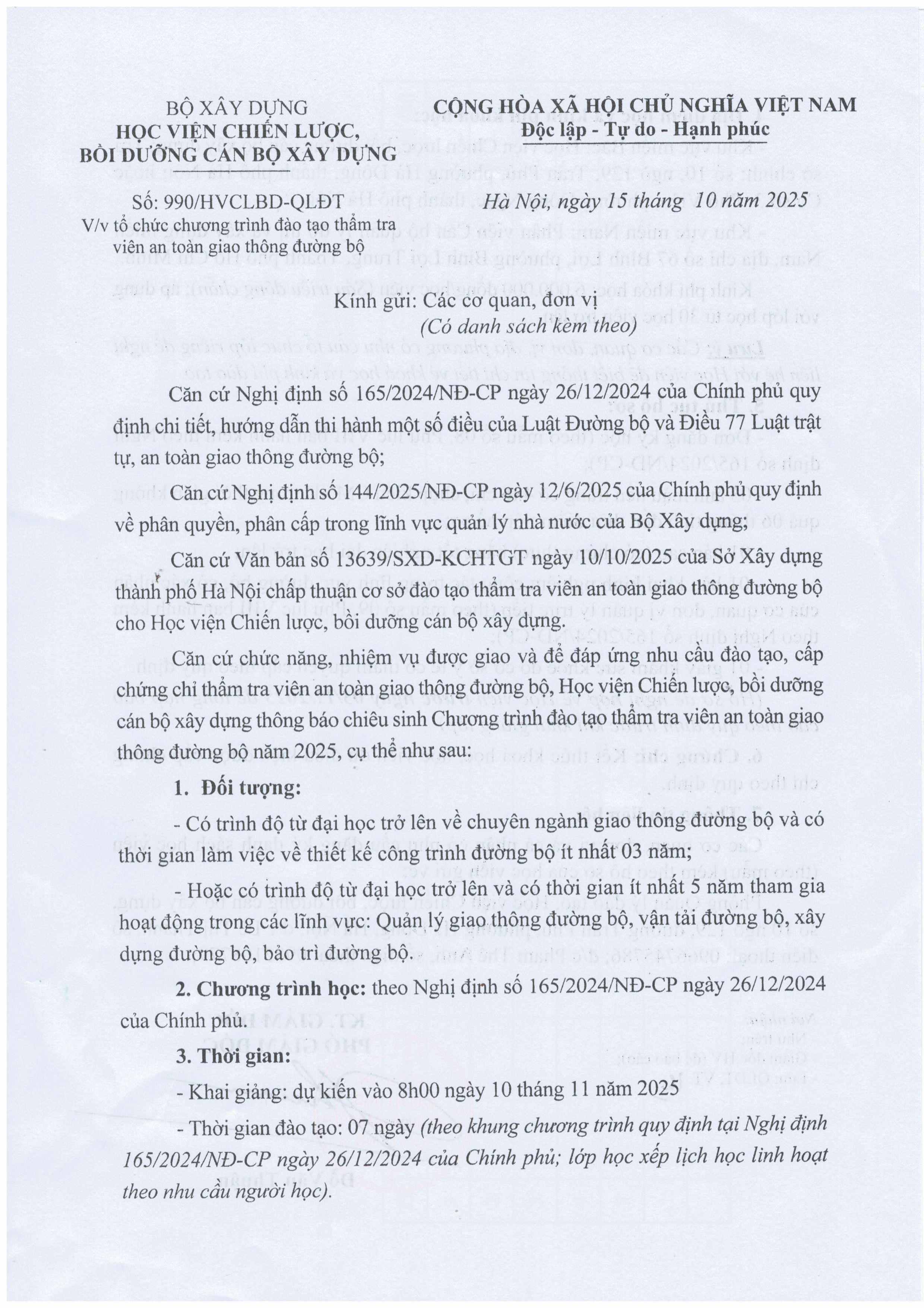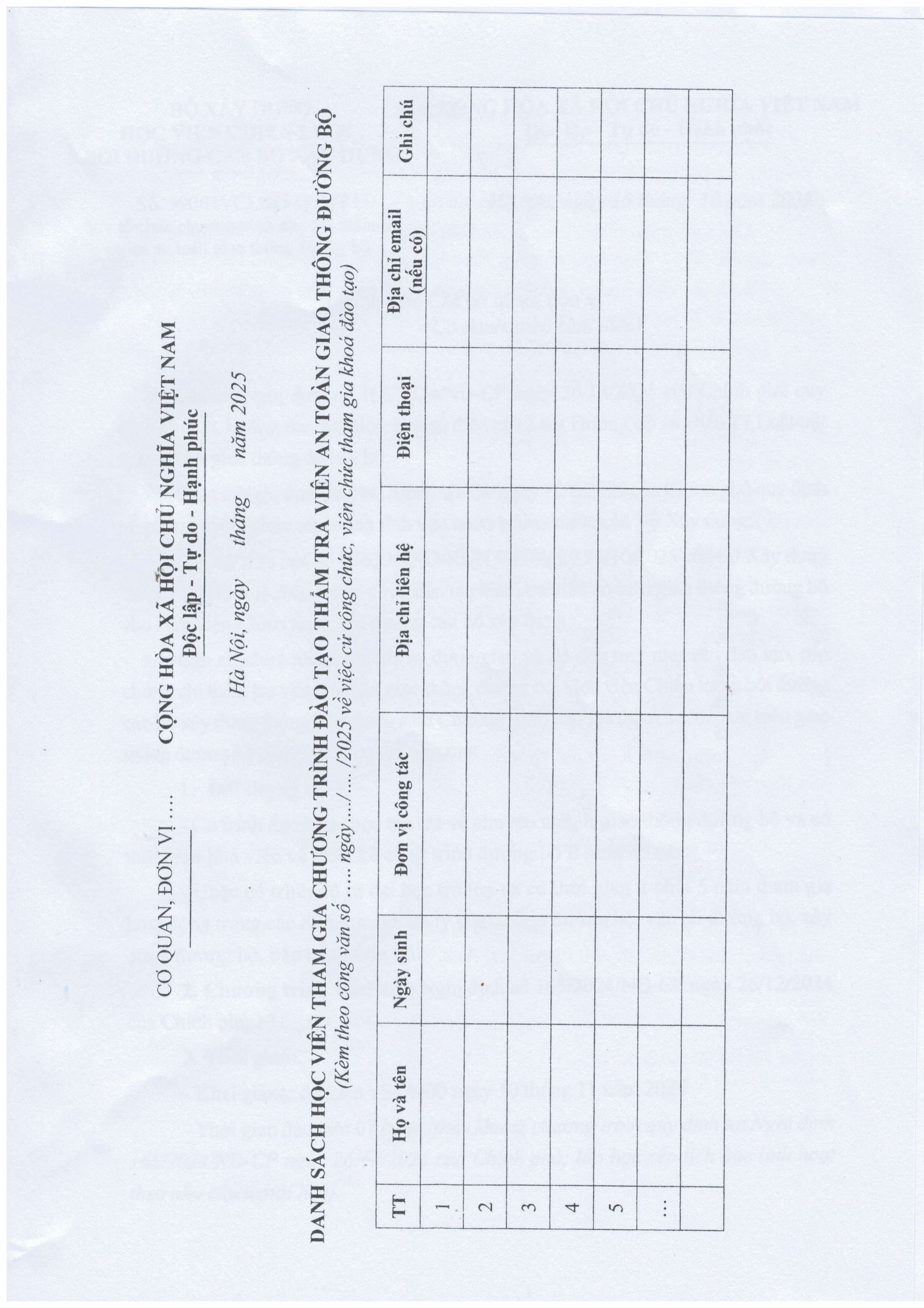 Chương trình đào tạo thẩm tra viên an toàn giao thông đường bộ 22/10/2025 Lượt xem : 23 Bình luận : 0 Chia sẻ : Thêm bình luận mới Bình luận của bạn đã đợc gửi thành công. Cảm ơn bạn! Làm mới Lỗi. Vui lòng thử lại Gửi bình luận