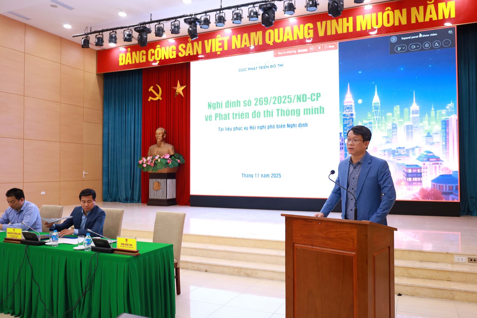 Ngày 06/11/2025, tại Hà Nội, Bộ Xây dựng tổ chức Hội nghị phổ biến Nghị định số 269/2025/NĐ-CP về phát triển đô thị thông minh theo hình thức trực tiếp kết hợp trực tuyến, với sự tham dự của đại diện các bộ, ngành Trung ương, lãnh đạo Sở Xây dựng các địa phương cùng đại diện nhiều tổ chức, viện nghiên cứu. Thứ trưởng Bộ Xây dựng Nguyễn Tường Văn chủ trì hội nghị.