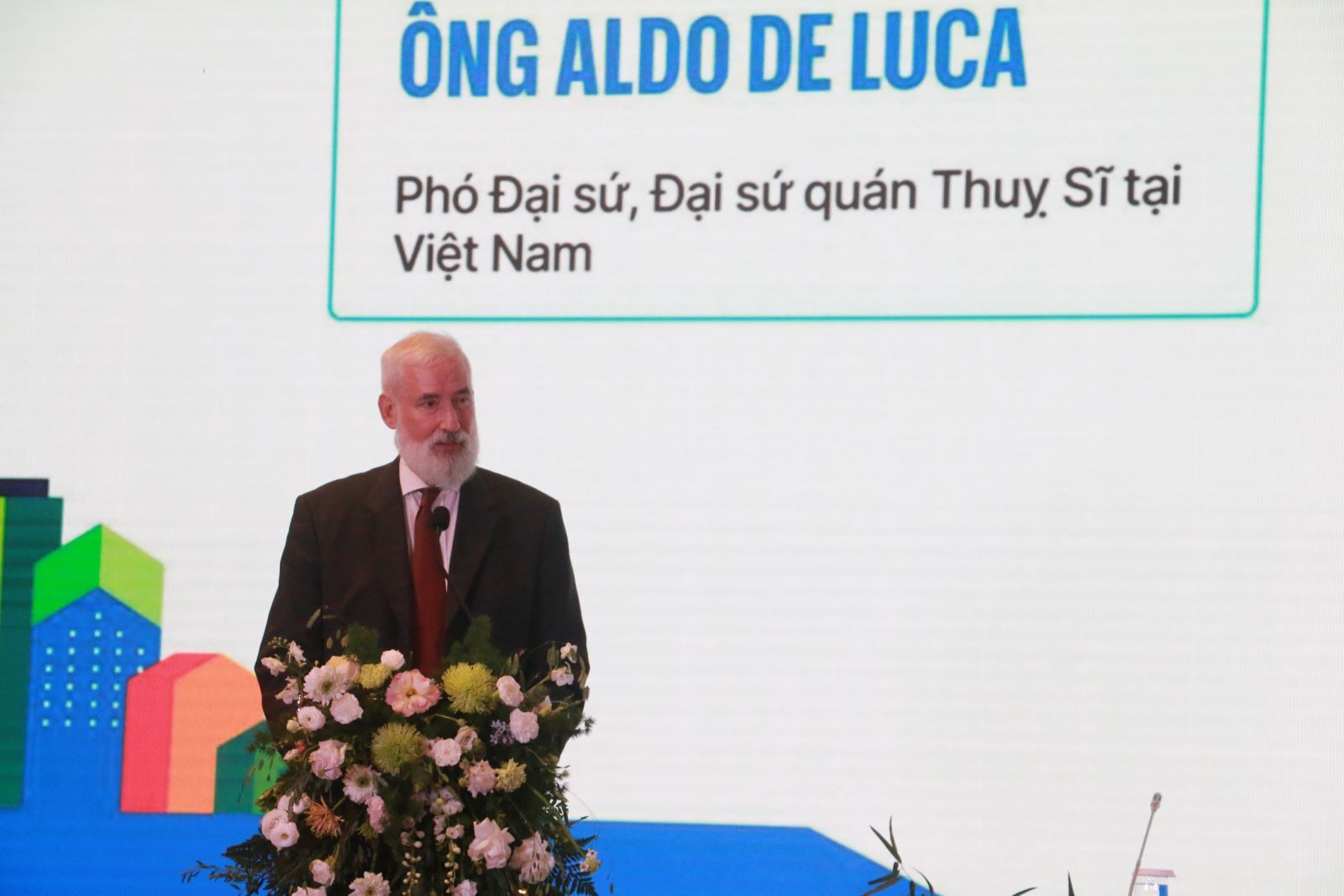 Ông Aldo de Luca - Phó Đại sứ Thụy Sĩ tại Việt Nam, đại diện đơn vị tài trợ, chia sẻ về hành trình của Thụy Sĩ hỗ trợ phát triển đô thị tại Việt Nam giai đoạn 2025 – 2028.