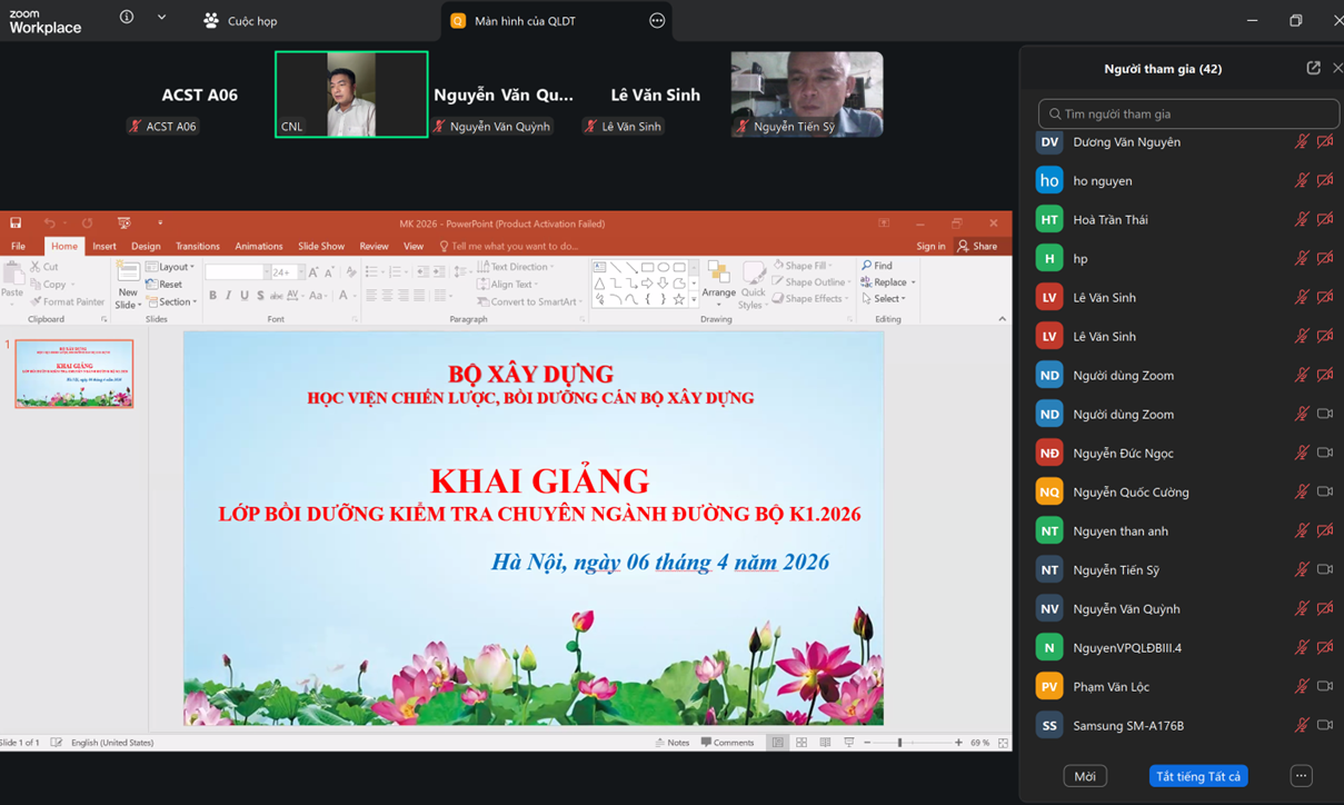 Tối ngày 06/4/2026, Học viện Chiến lược, bồi dưỡng cán bộ xây dựng đã trang trọng tổ chức lễ khai giảng trực tuyến lớp Bồi dưỡng kiểm tra chuyên ngành đường bộ K1/2026. Đây là hoạt động trọng tâm nhằm hiện thực hóa Kế hoạch đào tạo bồi dưỡng năm 2026 của Học viện, tập trung vào việc cập nhật và nâng cao kiến thức chuyên sâu về kiểm tra đường bộ cho đội ngũ cán bộ, công chức trong tình hình mới. Khóa học mang theo kỳ vọng giúp các học viên củng cố vững chắc kỹ năng nghề nghiệp, từ đó thực hiện hiệu quả các nhiệm vụ thực tiễn và giải quyết những thách thức phát sinh tại cơ quan, đơn vị.
