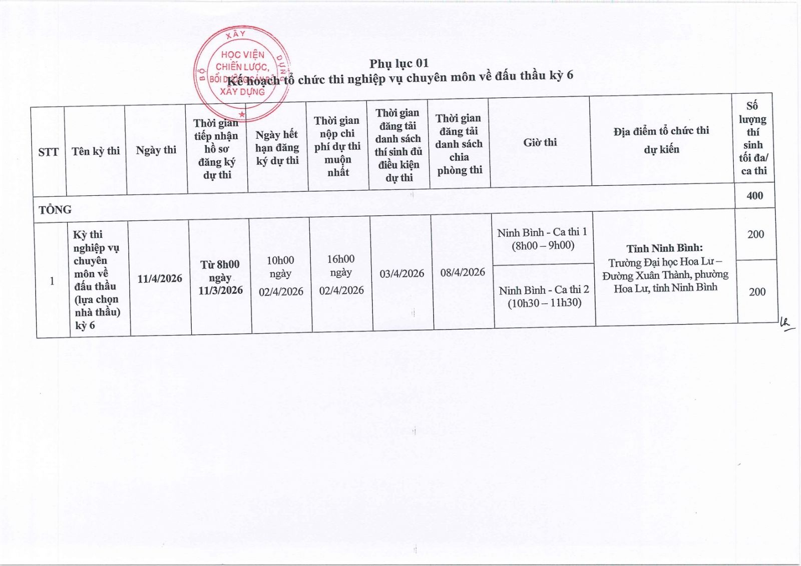 Tổ chức thi NV chuyên môn về đấu thầu kỳ 6 (tại Ninh Bình) 11/4/2026 14/03/2026 Lượt xem : 12 Bình luận : 0 Chia sẻ : Đang cập nhật... Tải xuống Tệp đnh kèm Thêm bình luận mới Bình luận của bạn đã đợc gửi thành công. Cảm ơn bạn! Làm mới Lỗi. Vui lòng thử lại Gửi bình luận