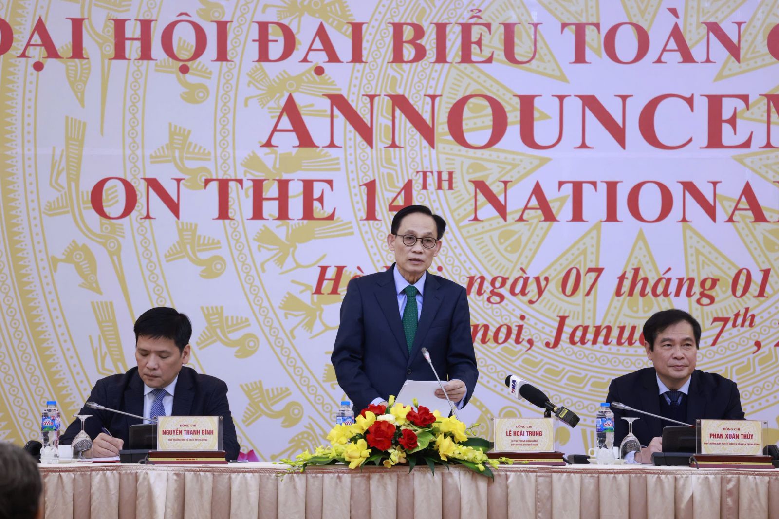 Chiều 7/1, tại Hà Nội, Bí thư Trung ương Đảng, Bộ trưởng Bộ Ngoại giao Lê Hoài Trung và Phó Trưởng Ban Tổ chức Trung ương Nguyễn Thanh Bình, Phó Trưởng Ban Tuyên giáo và Dân vận Trung ương Phan Xuân Thủy đồng chủ trì buổi Thông báo về Đại hội đại biểu toàn quốc Đảng Cộng sản Việt Nam lần thứ XIV tới các cơ quan đại diện ngoại giao nước ngoài, các tổ chức quốc tế tại Việt Nam.