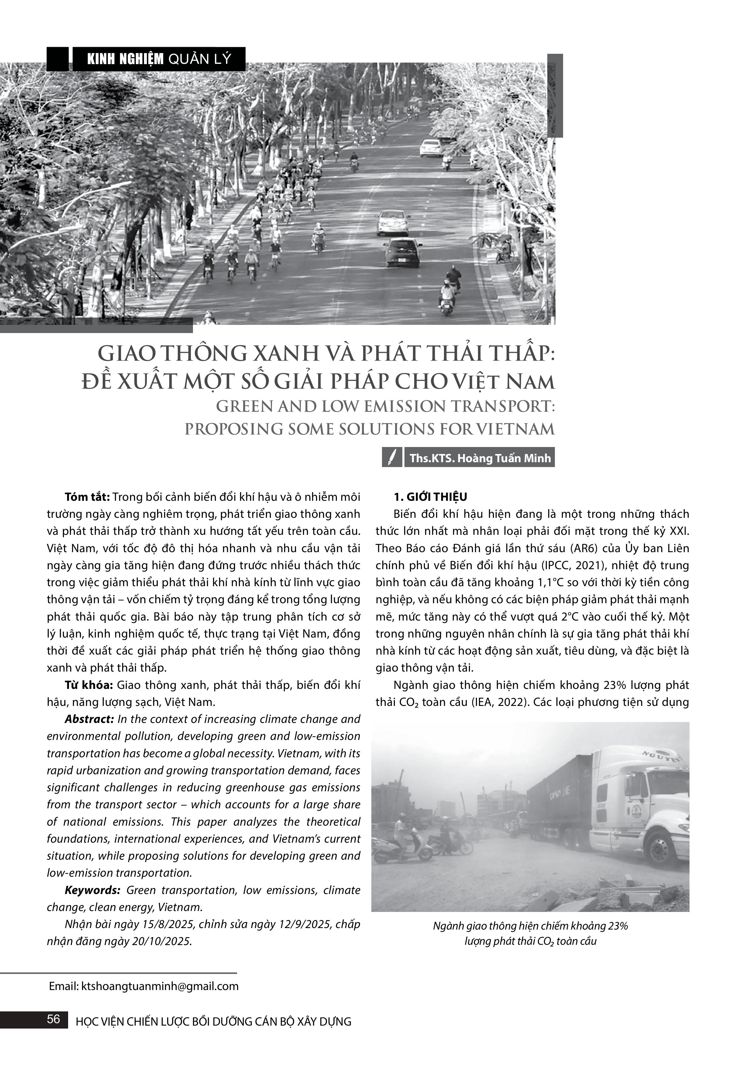 Ngày đăng 09/12/2025 Giao thông xanh và phát thải thấp: Đề xuất một số giải pháp cho Việt Nam Giao thông xanh và phát thải thấp: Đề xuất một số giải pháp cho Việt Nam Lượt xem : 22