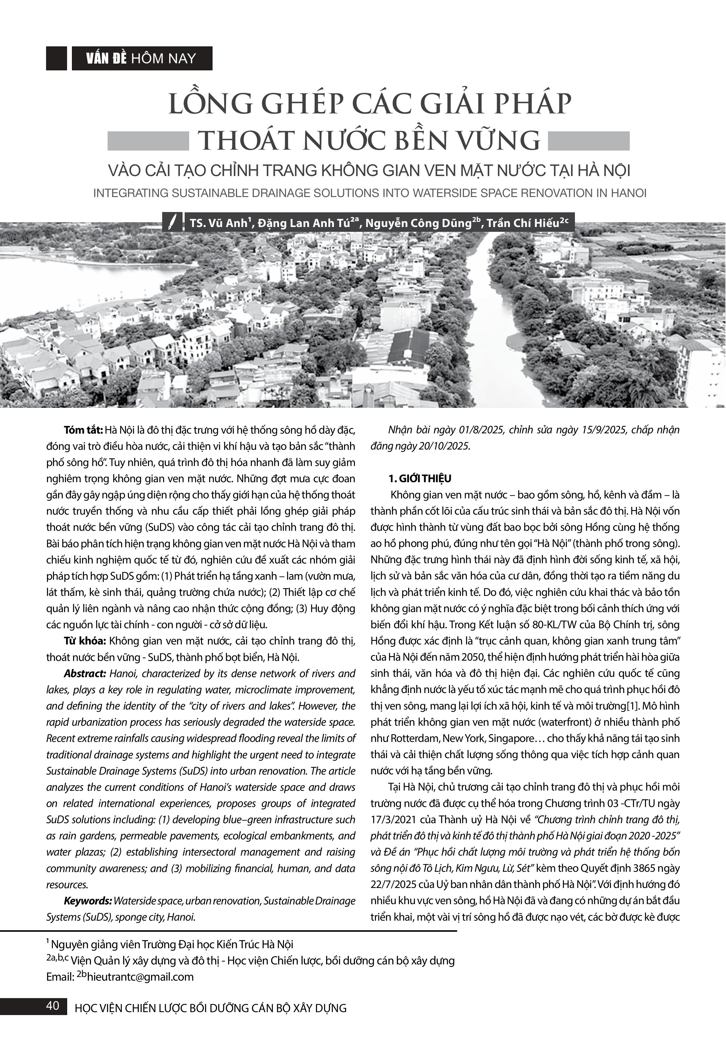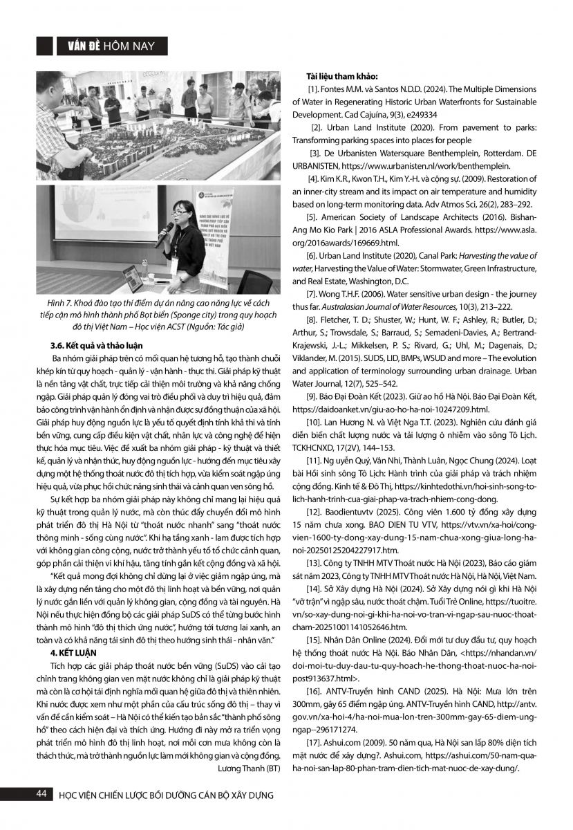 Lồng ghép các giải pháp thoát nước bền vững vào cải tạo chỉnh trang không gian ven mặt nước tại Hà Nội