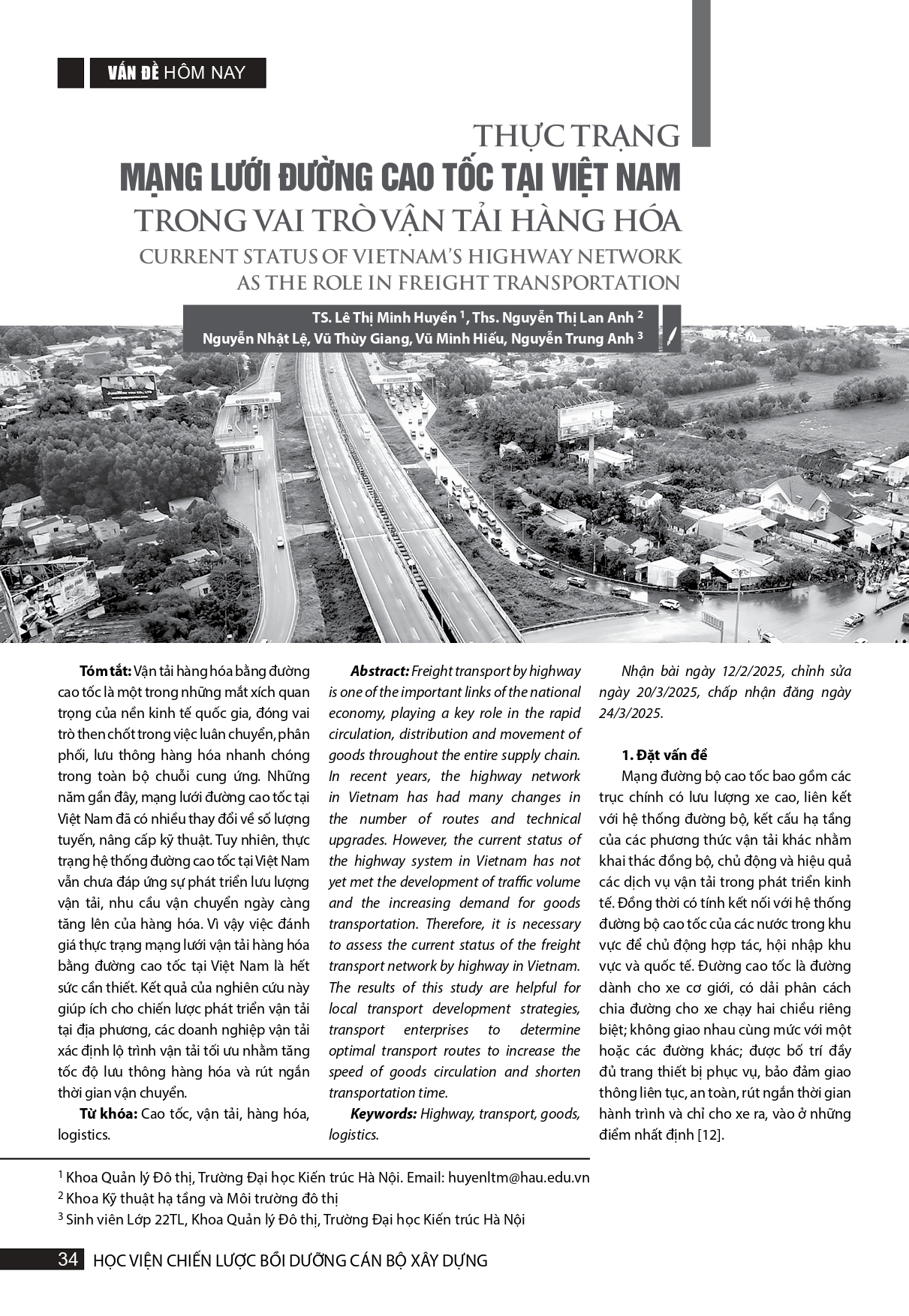 Ngày đăng 01/10/2025 Thực trạng mạng lưới đường cao tốc tại Việt Nam trong vai trò vận chuyển hàng hóa Thực trạng mạng lưới đường cao tốc tại Việt Nam trong vai trò vận chuyển hàng hóa Lượt xem : 5