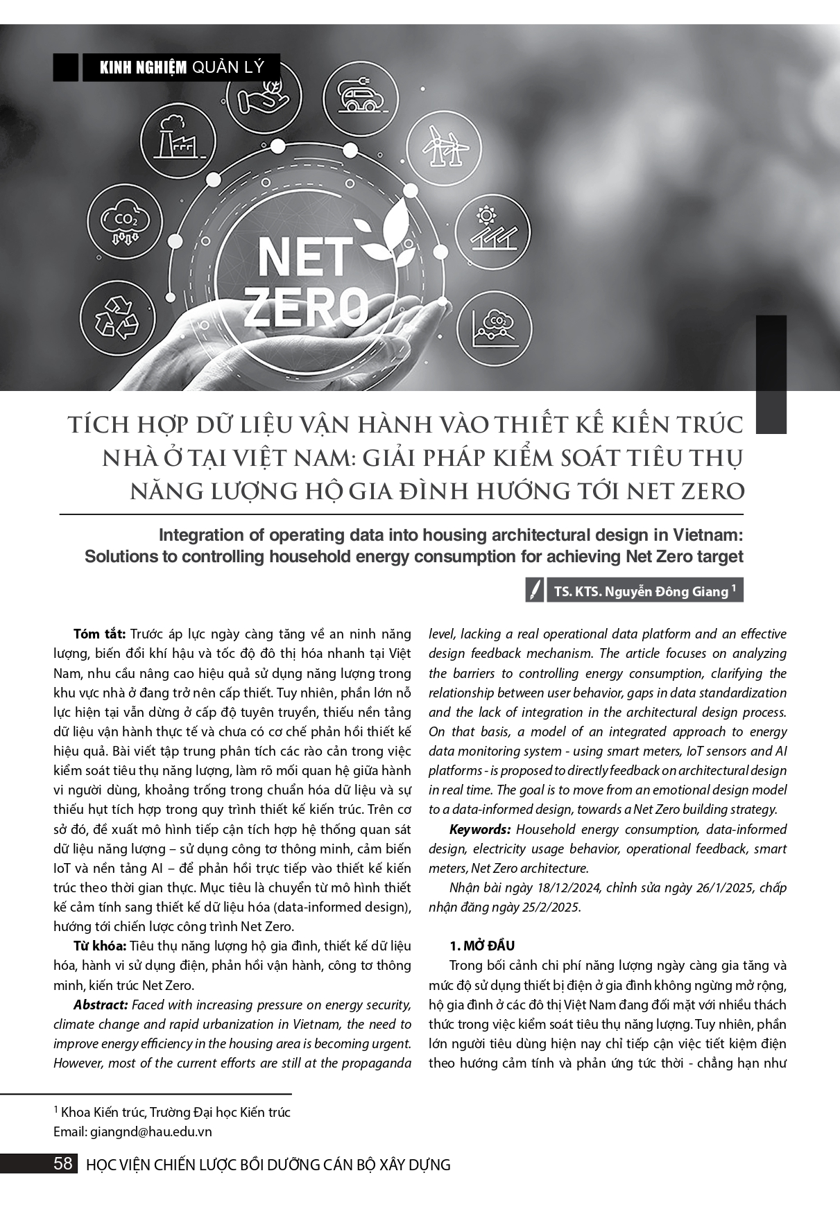 Tích hợp vận hành vào thiết kế kiến trúc nhà ở tại Việt Nam: Giải pháp kiểm soát tiêu thụ năng lương hộ gia đình hướng tới Net zero