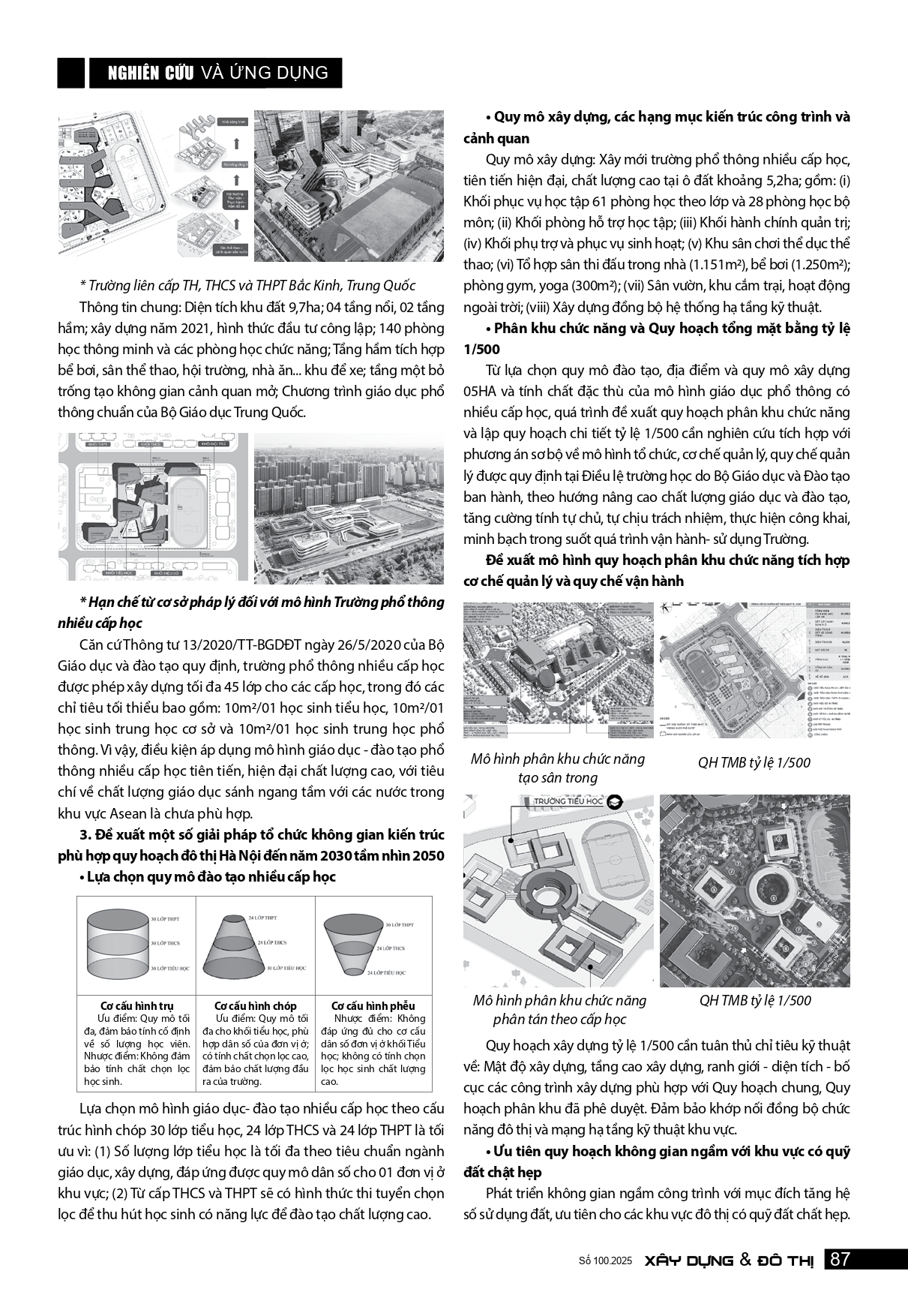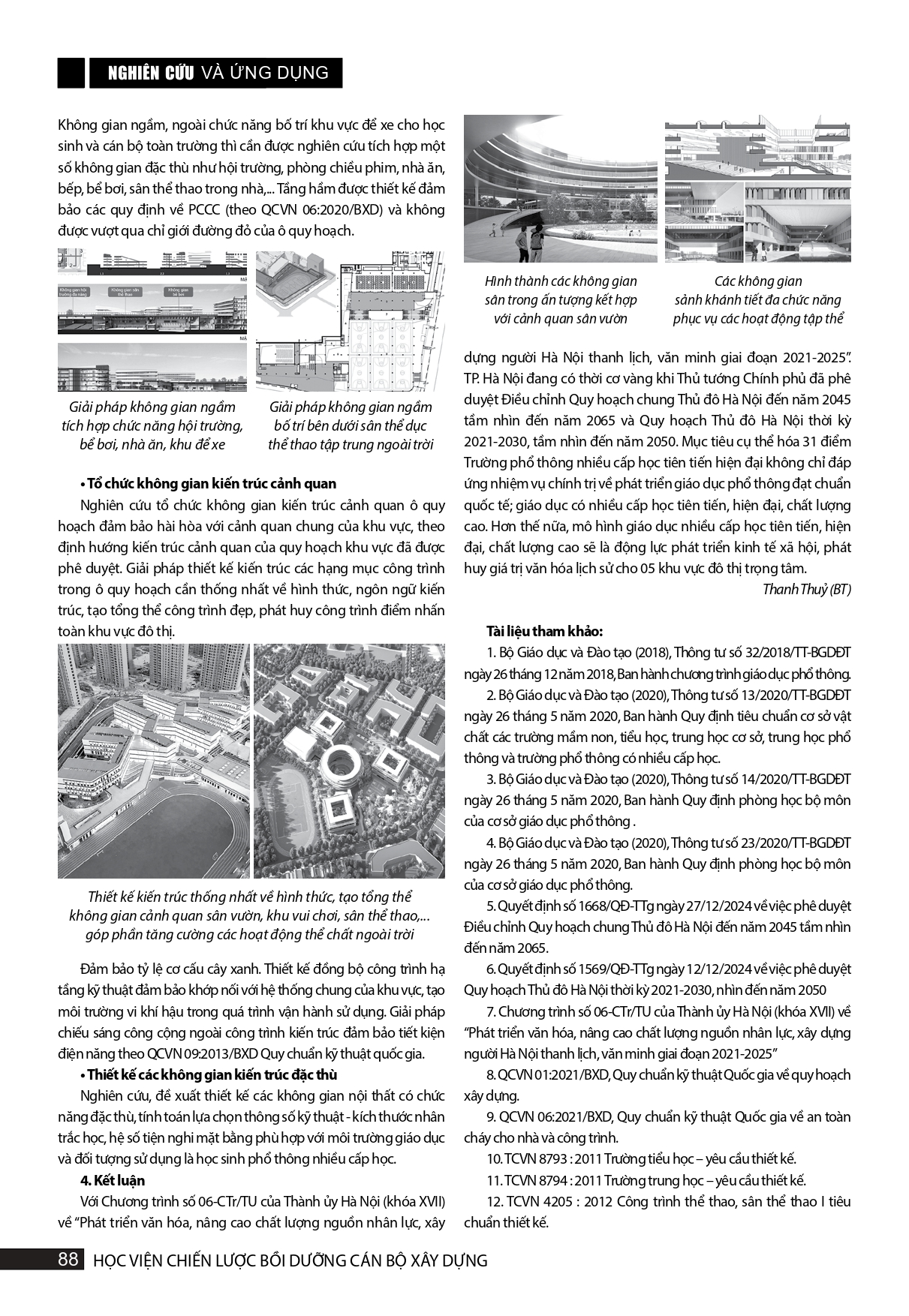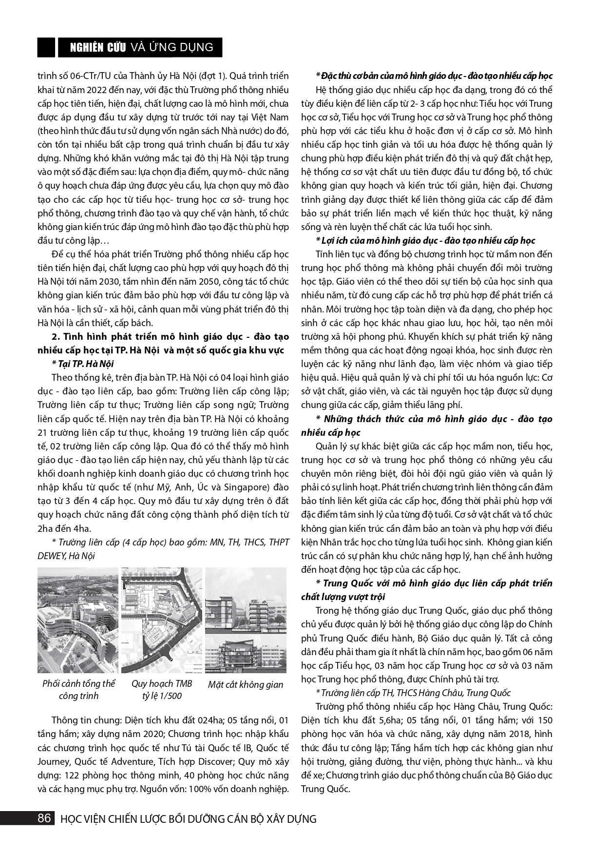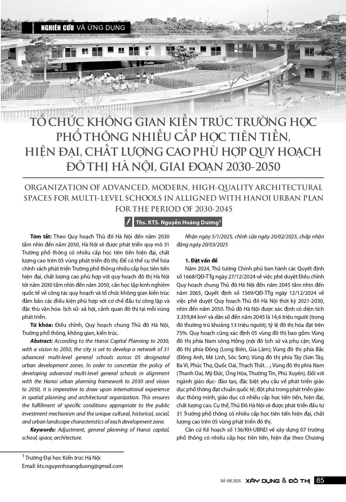 Tổ chức không gian kiến trúc trường học phổ thông nhiều cấp tiên tiến, hiện đại, chất lượng cao phù hợp với quy hoạch đô thị Hà Nội, giai đoạn 2030-2045