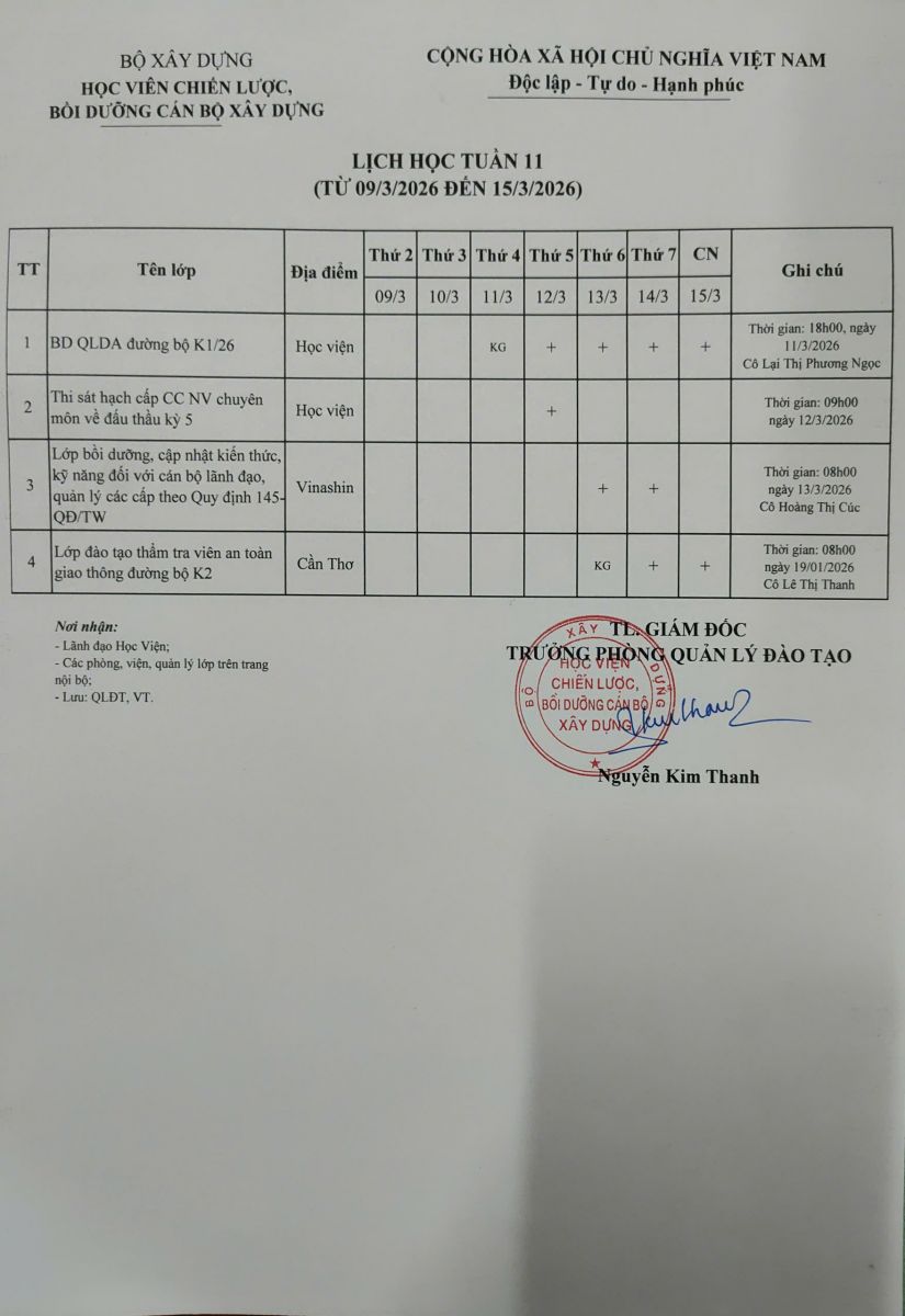 Lịch học tuần 11 từ 09/3/2026 đến 15/3/2026 13/03/2026 Lượt xem : 3 Bình luận : 0 Chia sẻ : Đang cập nhật... Thêm bình luận mới Bình luận của bạn đã đợc gửi thành công. Cảm ơn bạn! Làm mới Lỗi. Vui lòng thử lại Gửi bình luận