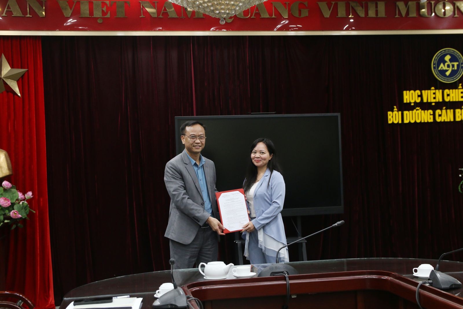 Thừa ủy quyền của lãnh đạo Học viện, đ/c Lê Khắc Khoa – Trưởng phòng Tổ chức – Hành chính đã công bố các quyết định bổ nhiệm của Giám đốc học viện, gồm: