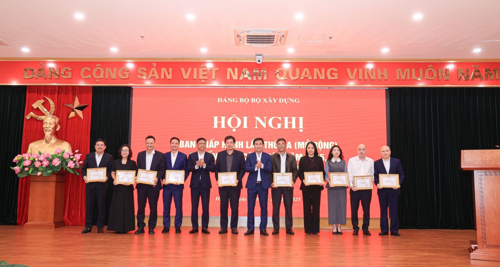 Tại hội nghị đã tổ chức khen thưởng các tập thể được Ban Thường vụ Đảng ủy Bộ Xây dựng tặng giấy khen: 11 tổ chức đảng đạt thành tích "Hoàn thành xuất sắc nhiệm vụ" tiêu biểu năm 2025; 11 tổ chức đảng có thành tích xuất sắc trong công tác lãnh đạo, chỉ đạo và tổ chức Đại hội đảng bộ cấp nhiệm kỳ 2025-2030; 7 tổ chức đảng có thành tích xuất sắc trong tổ chức cuộc thi Chính luận bảo vệ nền tảng tư tưởng Đảng năm 2025.