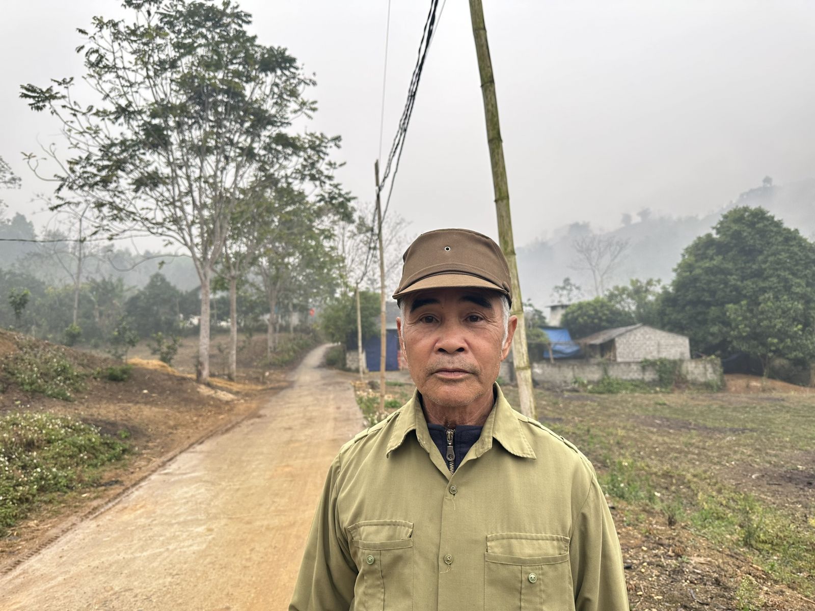 Ông Đào Xuân Lư, bên con đường ông đã bỏ tiền ra đổ đất, san đường cho trẻ nhỏ trong thôn đi học trước khi được bê tông hoá(Ảnh: Lý Thu)