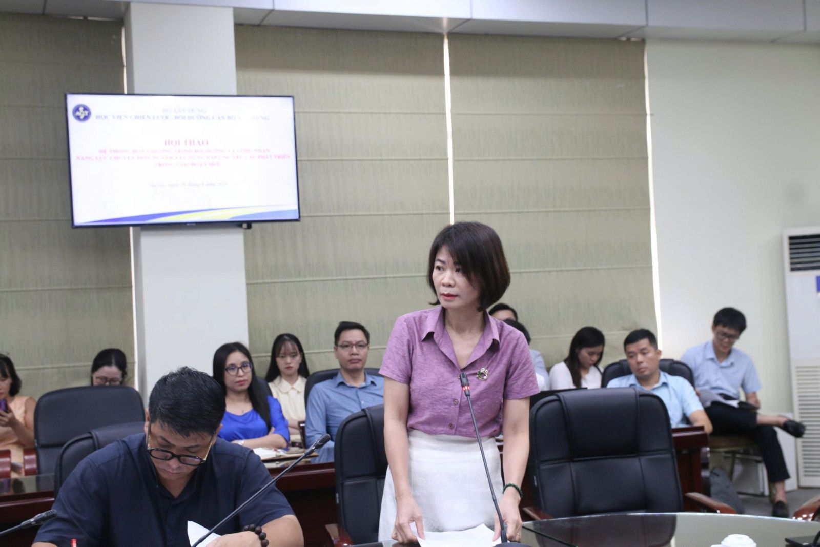 Phần thảo luận, trao đổi ý kiến diễn ra sôi nổi, với nhiều đóng góp thực tiễn từ các đại biểu. Điểm chung trong các ý kiến là sự đồng thuận cao về tính cấp thiết của việc hệ thống hóa chương trình bồi dưỡng. Các đại biểu nhấn mạnh, bồi dưỡng cán bộ ngành Xây dựng không thể chỉ dừng ở truyền đạt kiến thức mà cần hướng đến phát triển năng lực thực chất, có thể đo lường và đánh giá được.