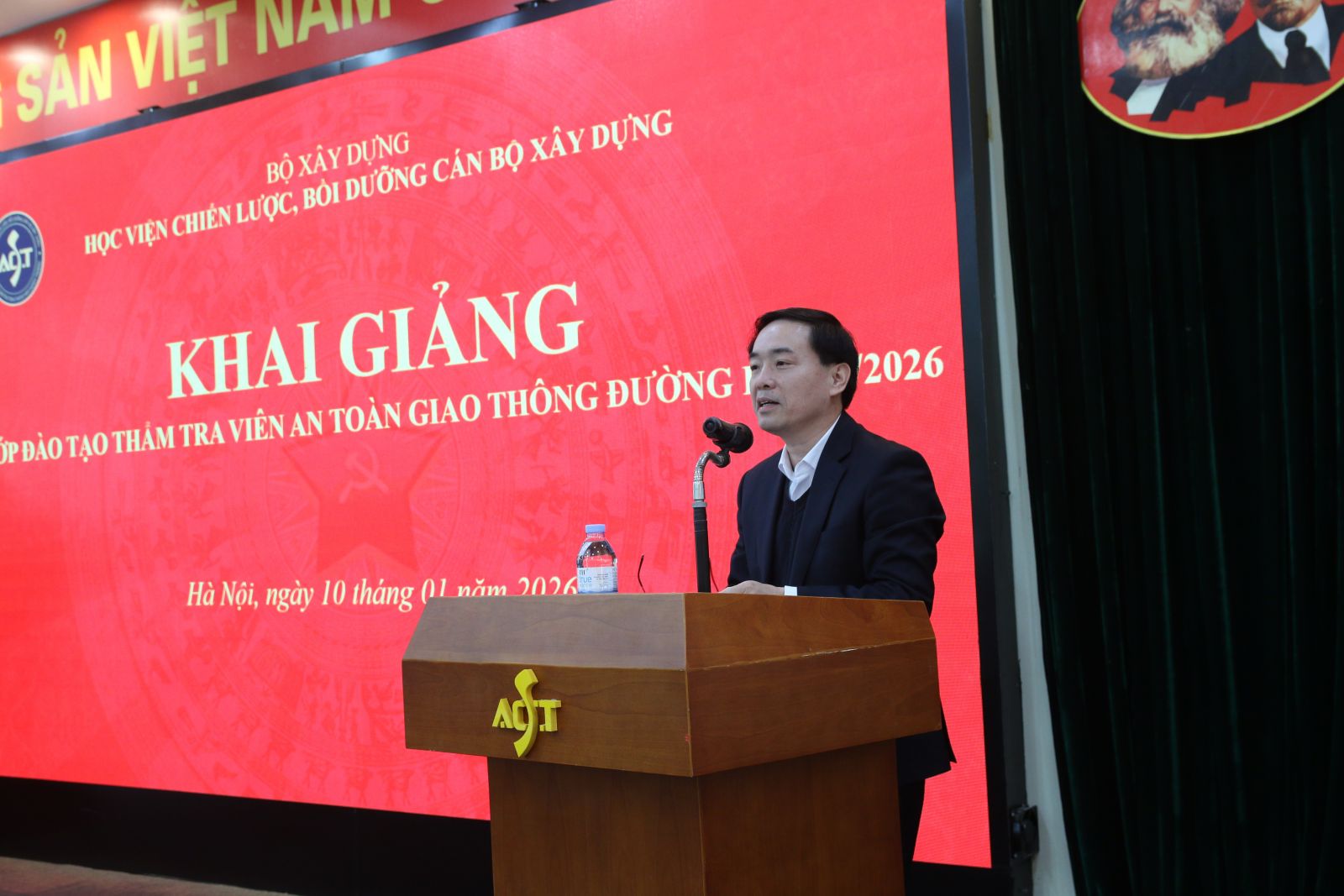 Sáng 10/01/2026, Học viện Chiến lược, bồi dưỡng cán bộ xây dựng (Học viện) tổ chức khai giảng khoá Đào tạo Thẩm tra viên an toàn giao thông đường bộ K1-2026 tại Học viện. Tham dự buổi khai giảng có TS. Đỗ Văn Thuận – Phó Giám đốc Học viện, đại diện Phòng Quản lý đào tạo, giảng viên cùng đông đủ các học viên đến từ các tỉnh, thành phía Bắc tham gia khoá đào tạo.