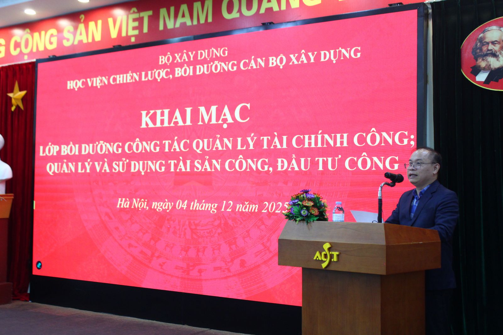 Phát biểu khai giảng lớp học, TS. Phạm Văn Bộ - Phó Giám đốc Học viện khẳng định lớp bồi dưỡng nhằm trang bị cho đội ngũ cán bộ những kiến thức và kỹ năng thiết thực trong bối cảnh ngành Xây dựng đang triển khai đồng bộ nhiều nhiệm vụ cải cách.