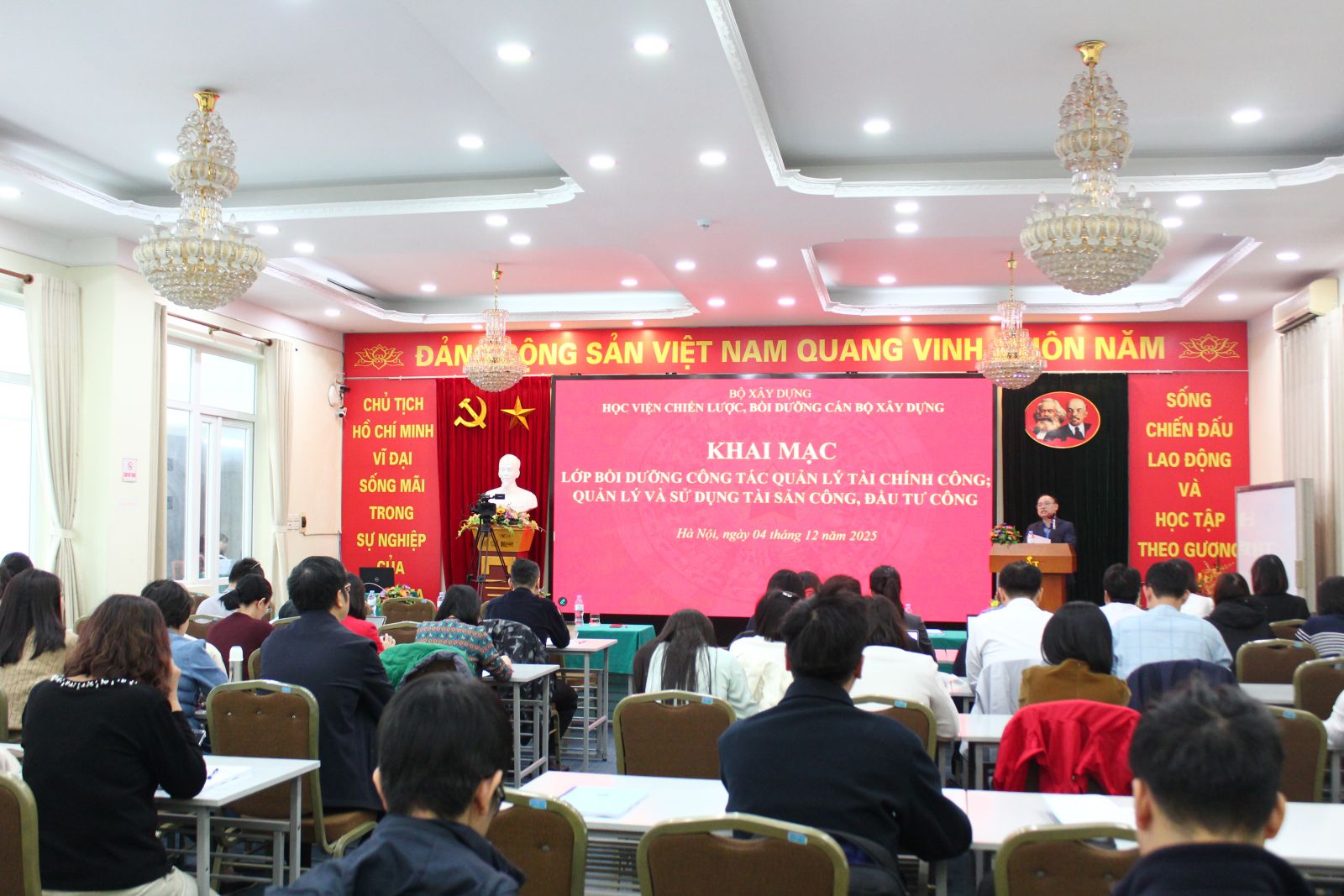 Ngày 4/12, Học viện Chiến lược, bồi dưỡng cán bộ xây dựng (Học viện) tổ chức Lớp bồi dưỡng công tác quản lý tài chính công, quản lý và sử dụng tài sản công, đầu tư công theo hình thức trực tiếp kết hợp trực tuyến cho hơn 300 học viên đến từ các đơn vị thuộc Cục, Vụ, Viện, trường và Văn phòng trực thuộc Bộ Xây dựng.