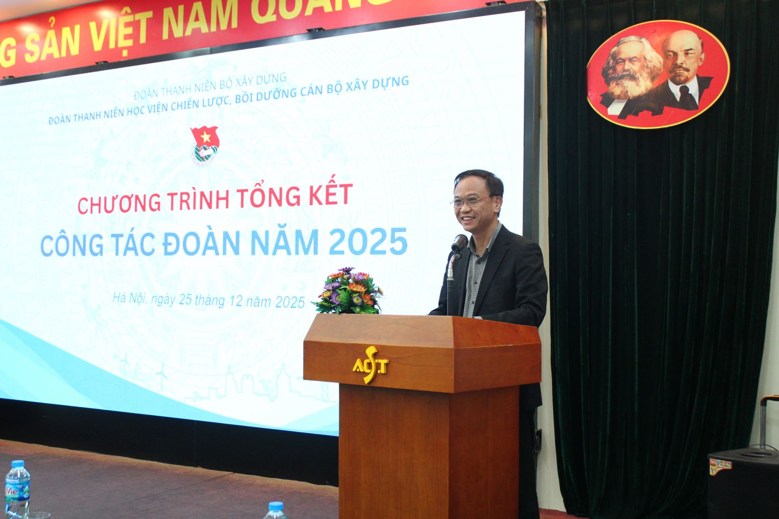 Phát biểu chỉ đạo tại Hội nghị tổng kết công tác Đoàn và phong trào thanh niên năm 2025 của Đoàn TNCS Hồ Chí Minh Học viện Chiến lược, Bồi dưỡng Cán bộ Xây dựng, TS Ngô Anh Tuấn - Bí thư Đảng ủy, Giám đốc Học viện biểu dương tinh thần nỗ lực, trách nhiệm của tập thể đoàn viên thanh niên trong bối cảnh Học viện vừa trải qua quá trình hợp nhất, sắp xếp tổ chức bộ máy với nhiều khó khăn, thách thức.