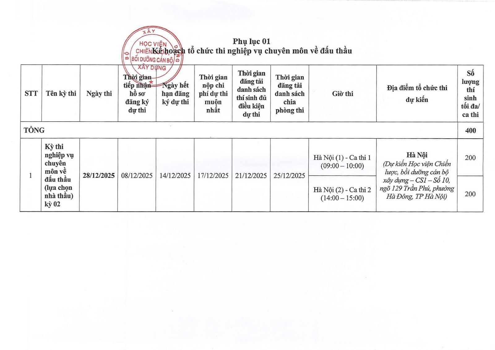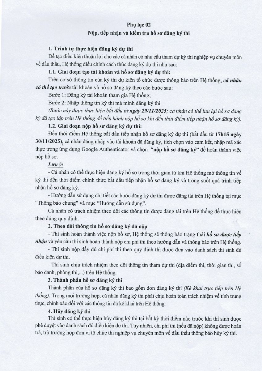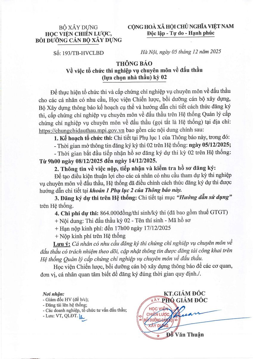 Tổ chức thi nghiệp vụ đấu thầu kỳ 2 05/12/2025 Lượt xem : 541 Bình luận : 0 Chia sẻ : Tải xuống Tệp đnh kèm Thêm bình luận mới Bình luận của bạn đã đợc gửi thành công. Cảm ơn bạn! Làm mới Lỗi. Vui lòng thử lại Gửi bình luận