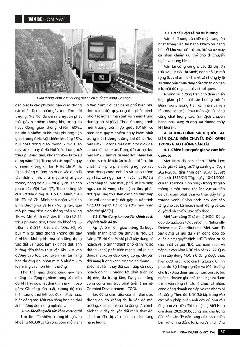 Ngày đăng 03/12/2025 Chuyển đổi xanh trong giao thông vận tải đường bộ ở Việt Nam hiện nay Chuyển đổi xanh trong giao thông vận tải đường bộ ở Việt Nam hiện nay Lượt xem : 32
