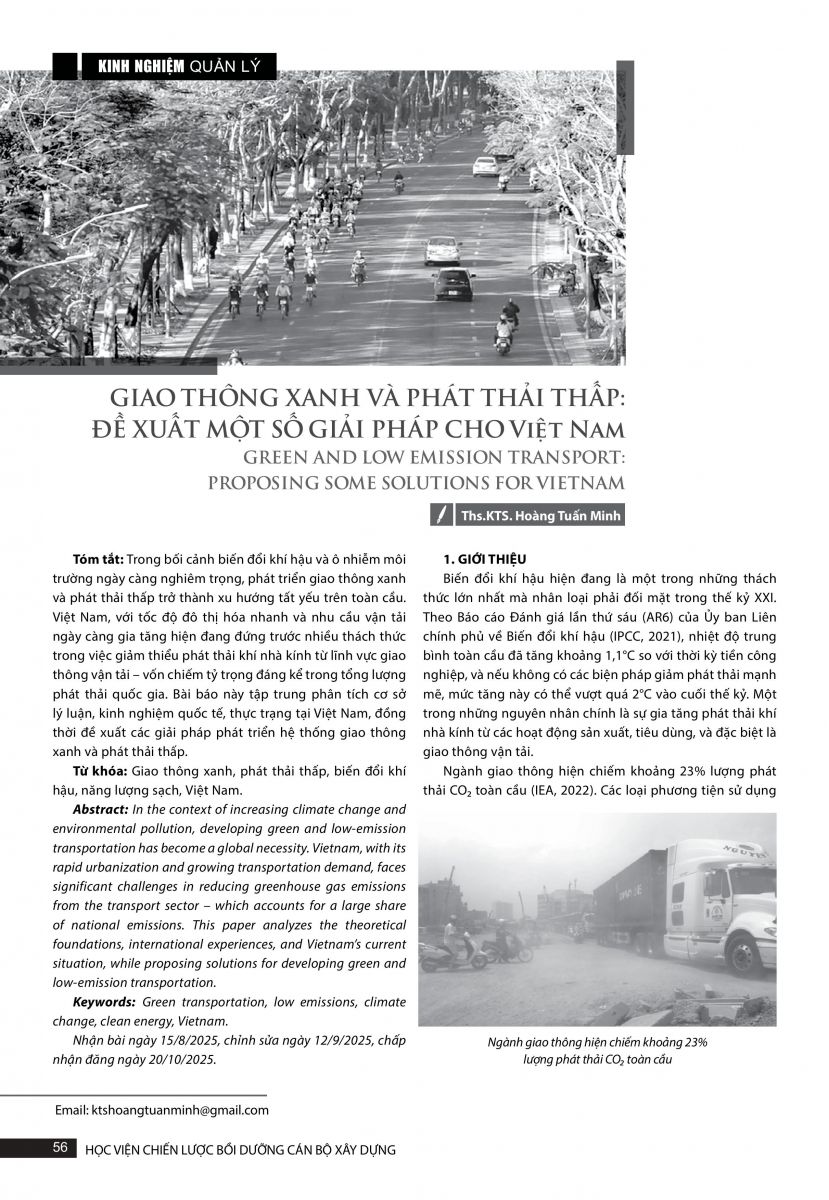 Ngày đăng 09/12/2025 Giao thông xanh và phát thải thấp: Đề xuất một số giải pháp cho Việt Nam Giao thông xanh và phát thải thấp: Đề xuất một số giải pháp cho Việt Nam Lượt xem : 20