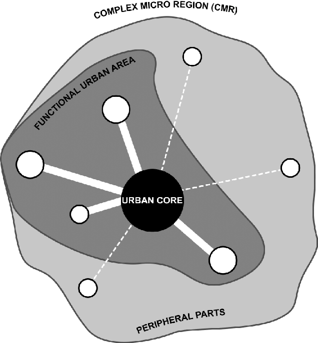 FUA (Functional Urban Area): Vùng chức năng đô thị bao gồm đô thị lõi và khu vực có dòng di chuyển hằng ngày (commuting zone).