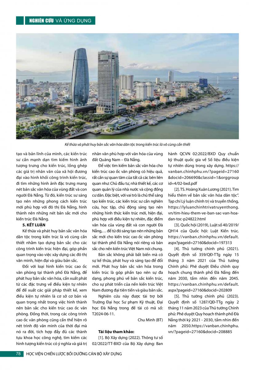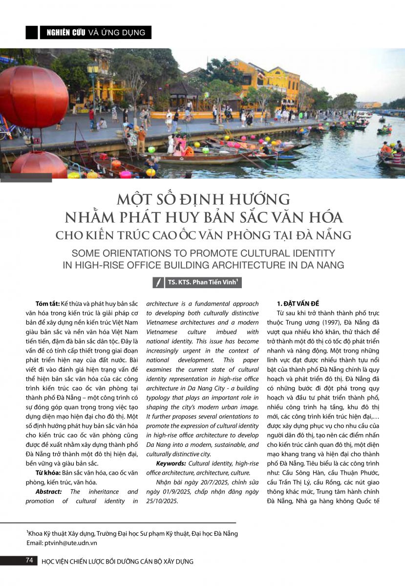 Ngày đăng 12/01/2026 - 15:32 (Lượt xem : 54) Một số định hướng nhằm phát huy bản sắc văn hoá cho kiến trúc cao ốc văn phòng tại Đà Nẵng