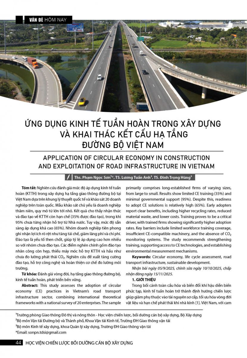 Ngày đăng 20/01/2026 - 16:13 (Lượt xem : 52) Ứng dụng kinh tế tuần hoàn trong xây dựng và khai thác kết cấu hạ tầng đường bộ Việt Nam
