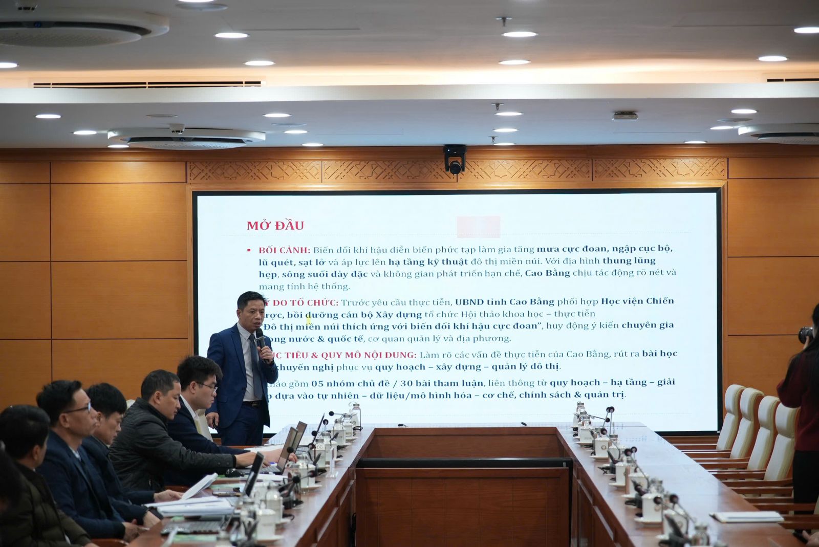 Theo định hướng thống nhất giữa UBND tỉnh Cao Bằng và Học viện Chiến lược, bồi dưỡng cán bộ xây dựng, Hội thảo sẽ tập trung trao đổi các vấn đề khoa học và thực tiễn đang đặt ra đối với đô thị miền núi trong bối cảnh biến đổi khí hậu cực đoan.