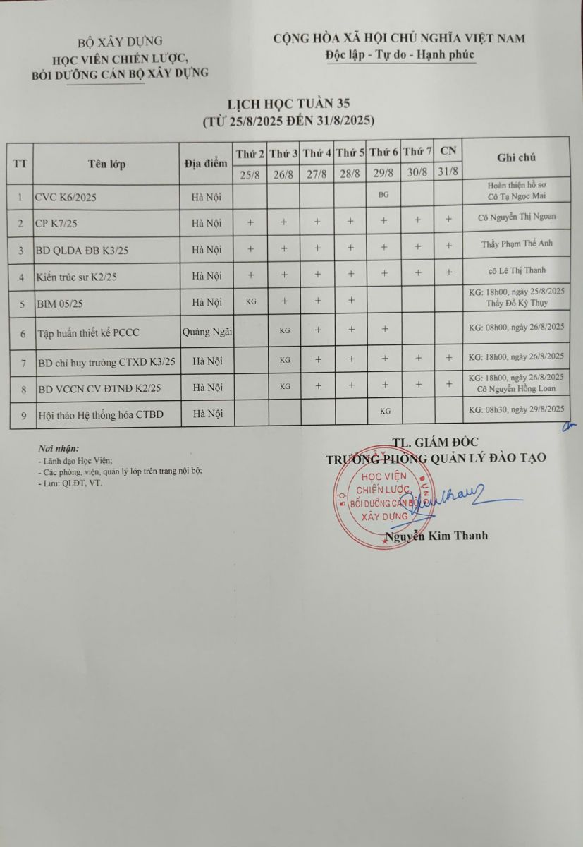 Lịch học tuần 35 từ 25/8/2025 đến 31/8/2025 04/09/2025 Lượt xem : 267 Bình luận : 0 Chia sẻ : Thêm bình luận mới Bình luận của bạn đã đợc gửi thành công. Cảm ơn bạn! Làm mới Lỗi. Vui lòng thử lại Gửi bình luận