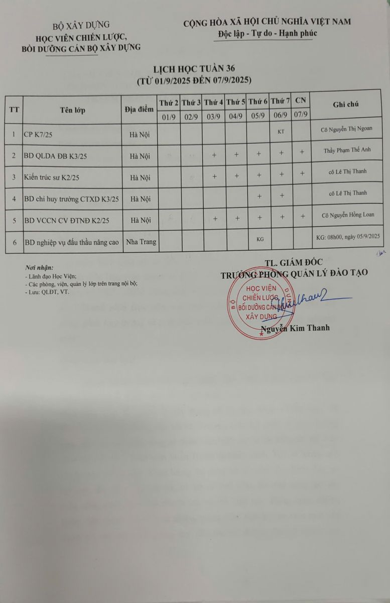 Lịch học tuần 36 từ 1/9/2025 đến 7/9/2025 04/09/2025 Lượt xem : 275 Bình luận : 0 Chia sẻ : Thêm bình luận mới Bình luận của bạn đã đợc gửi thành công. Cảm ơn bạn! Làm mới Lỗi. Vui lòng thử lại Gửi bình luận