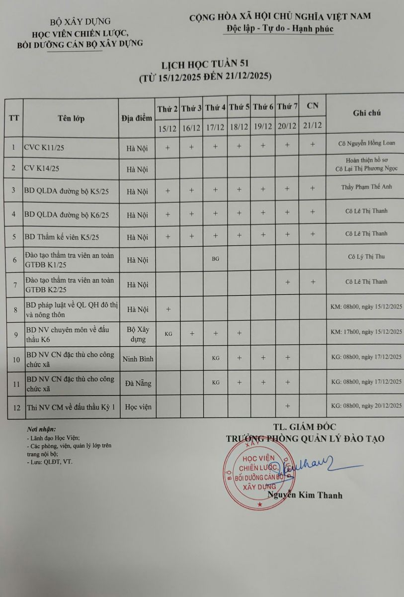Lịch học tuần 51 từ ngày 15/12/2025 đến 21/12/2025 17/12/2025 Lượt xem : 42 Bình luận : 0 Chia sẻ : Thêm bình luận mới Bình luận của bạn đã đợc gửi thành công. Cảm ơn bạn! Làm mới Lỗi. Vui lòng thử lại Gửi bình luận