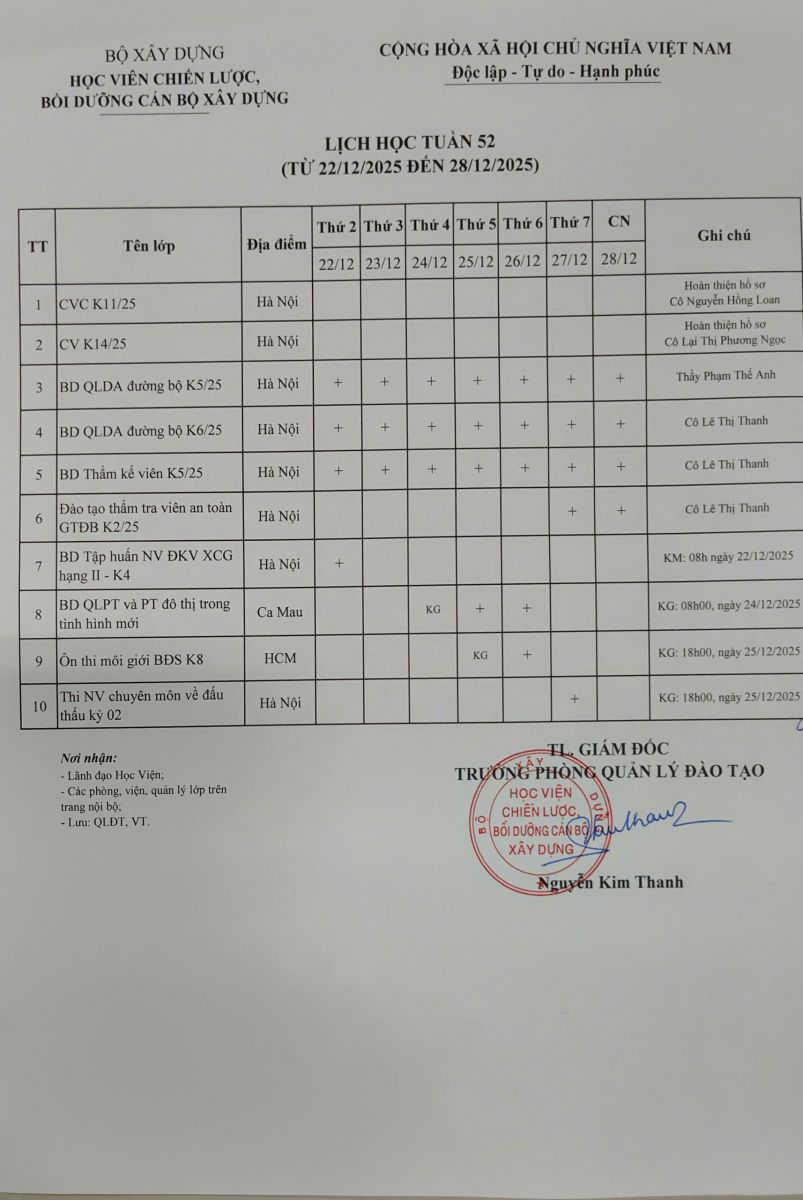 Lịch học tuần 52 từ ngày 22/12/2025 đến 28/12/2025 22/12/2025 Lượt xem : 45 Bình luận : 0 Chia sẻ : Thêm bình luận mới Bình luận của bạn đã đợc gửi thành công. Cảm ơn bạn! Làm mới Lỗi. Vui lòng thử lại Gửi bình luận